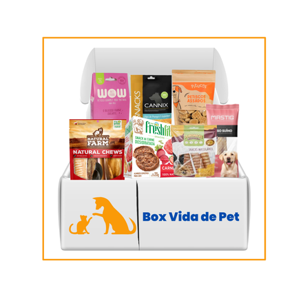 Receba uma caixa personalizada para o seu pet com 6 itens variados, escolhidos com carinho! A seleção pode incluir brinquedos, petiscos, alimentos úmidos, acessórios e produtos de higiene. Assinatura com renovação automática.